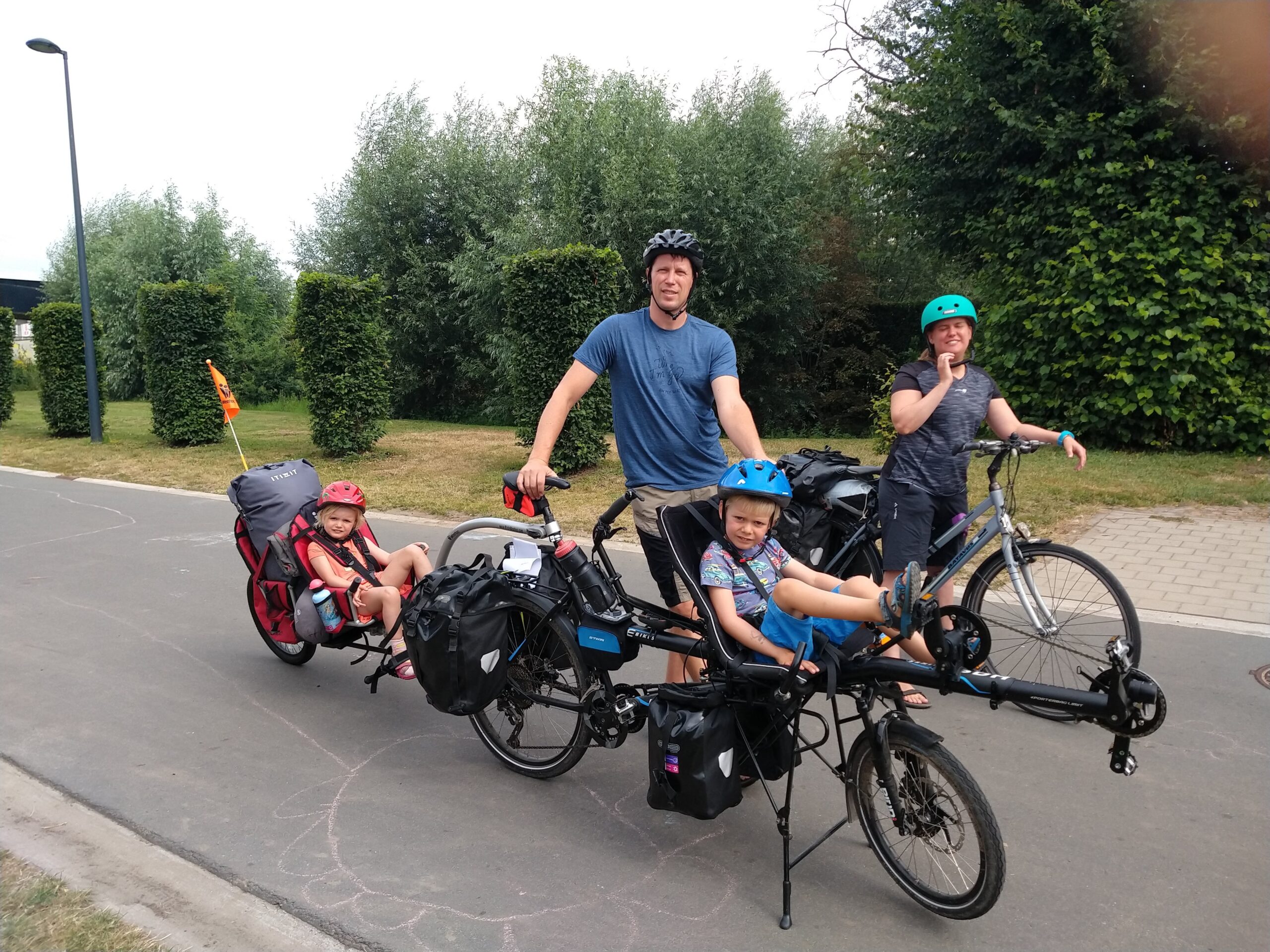 Kort na de middag ‘sprongen’ we de fietsen op. We maakten een tussenstop bij Lien, Jonas en Pjotr in Rozebeke. Daarna passeerden we nog eens langs Maarten en Felice in Opbrakel om zo naar oma van Stefaan te fietsen.