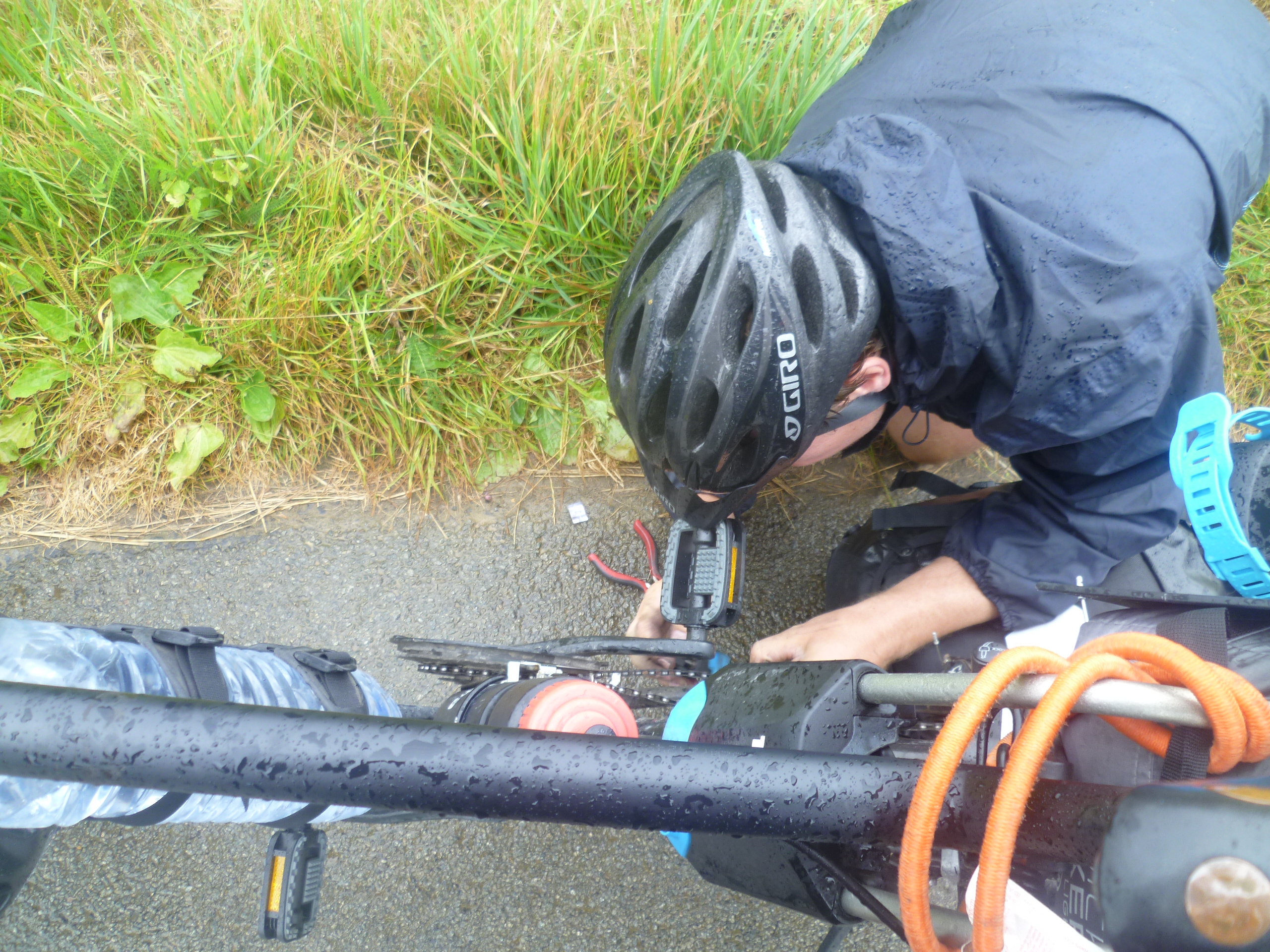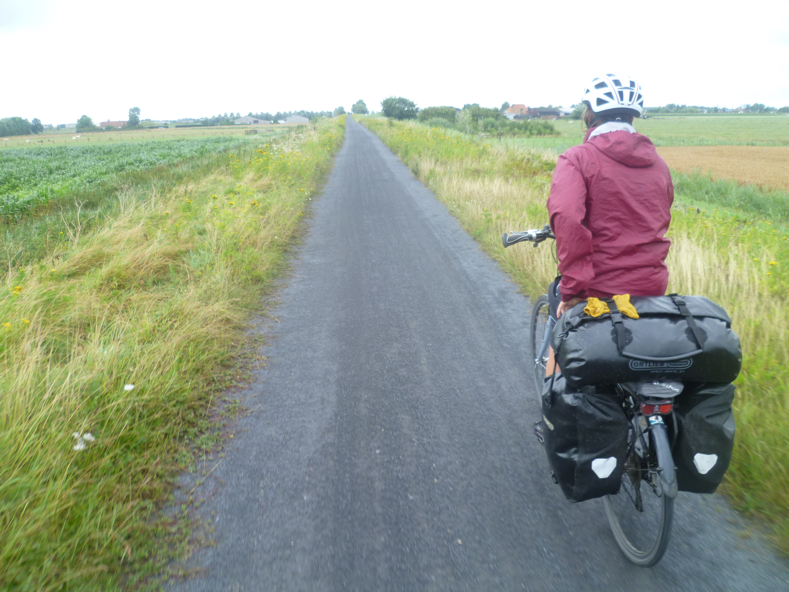 In de gietende regen zetten we onze tocht verder. Na rijp beraad beslisten we om richting Oostende te fietsen. Normaal waren we vandaag richting Nieuwpoort gereden (als we de routen verder zouden volgen). We konden daar blijven logeren bij Linde en Mike (waarvoor dikke merci). Maar door het slechte weer hebben we beslist onmiddellijk naar Oostende te fietsen waar mijn mama woont. Daar kunnen we alles laten drogen en wassen. Hoe we het verder doen, daar moeten we nog eens over nadenken. De kans is groot dat Jan naar huis fietst of met de trein naar huis gaat, de auto haalt en wij met heel ons hebben en houden terug naar Oostakker terugkeren.